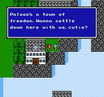 I'm using the FF3 White Mage style of 3/4ths view for these characters as well as adjustments to Maria and Leila to match, same as I did for FF1. Text referring to the edited characters has also been adjusted as well -- Fiona gets referred to with she/her, Maria calls Leona her sister, etc. When I made the FF1 edits, I didn't plan on doing the same for FF2 as it features actual characters rather than blank slates, but then I thought about the possibility of a textbox that says "Gal speak beaver" and so I had to do it.